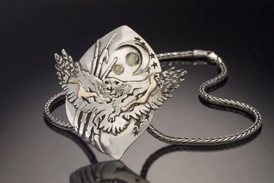 I've had the pleasure and honor of working with Native American teachers who have guided me through the depth of my work, from the nature and healing energy of the stones to the use of metals. Each piece I create is a fabricated work of art, working directly with the metals and gem stones. I saw, solder, applique, overlay, forge and use mixed metals and gems to create a piece that is all it's own. One of a kind.